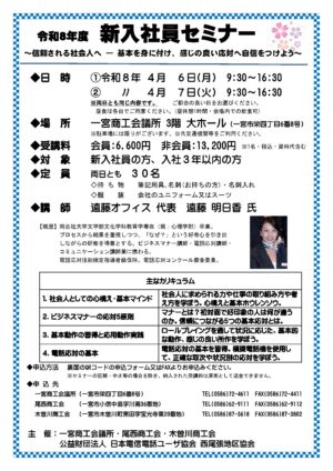 毎回、好評を頂いている新入社員セミナーを下記のとおり開催します。